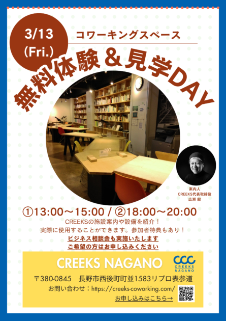【新生活前開催!】CREEKSコワーキング無料体験&見学DAY #12