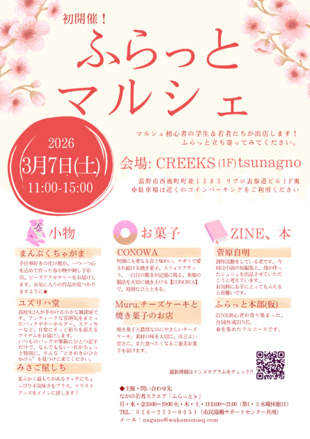 もんぜんぶら座3F、ながの若者スクエア「ふらっと♭」を利用している学生や若者がマルシェを企画!
